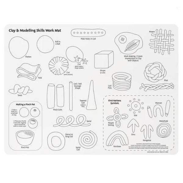 Featuring a comprehensive selection of modelling skills, the mat provides a hands-on learning experience. The inclusion of Indigenous symbols adds a cultural and educational dimension to your creative education, encouraging young artists to explore and appreciate the rich artistic heritage of Australia’s First Nations peoples.