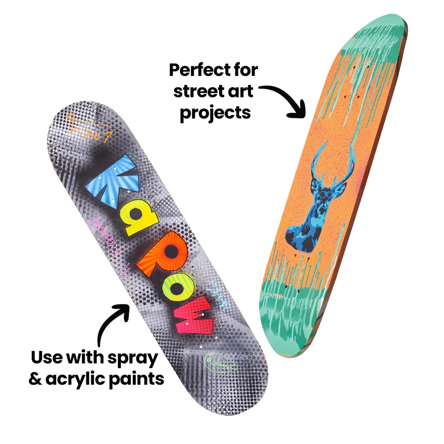 This plywood skateboard deck provides a sturdy, flat surface for students to paint, decorate, and transform into personalised works of art. Measuring 79cm long, 20cm wide, and 1cm thick, it offers ample space for bold designs, intricate patterns, and mixed-media applications. Weighing approximately 1kg, this lightweight yet durable board is perfect for display and an excellent way for students to showcase their creativity in the community. While it is not designed for actual skateboarding, this deck is a fantastic alternative canvas for street art, pop culture projects, or contemporary design pieces.